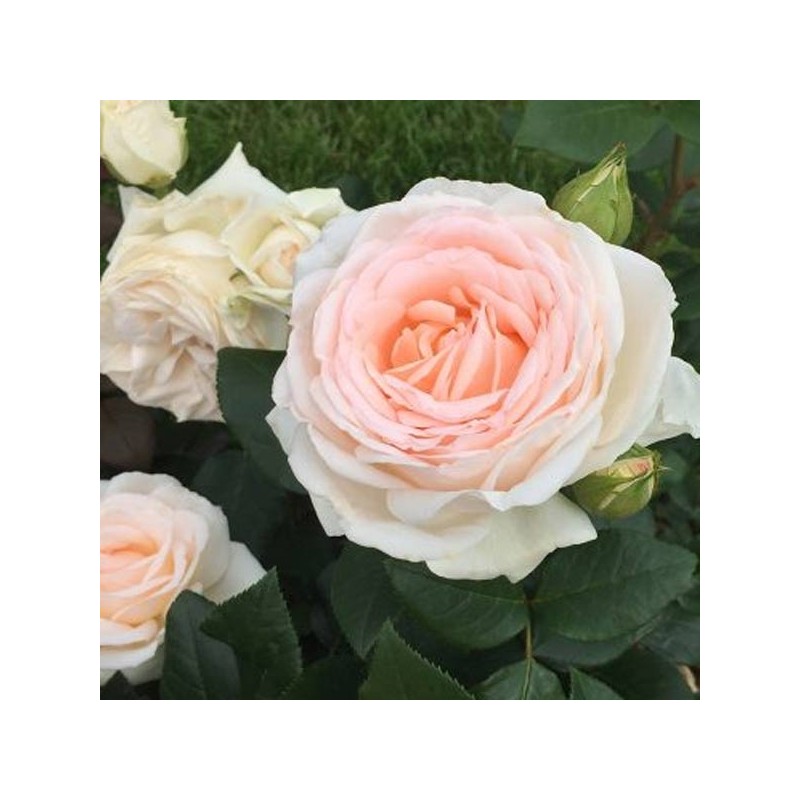 - De grandes fleurs aux multiples pétales blanc crémeux entourant un cœur rosé,
