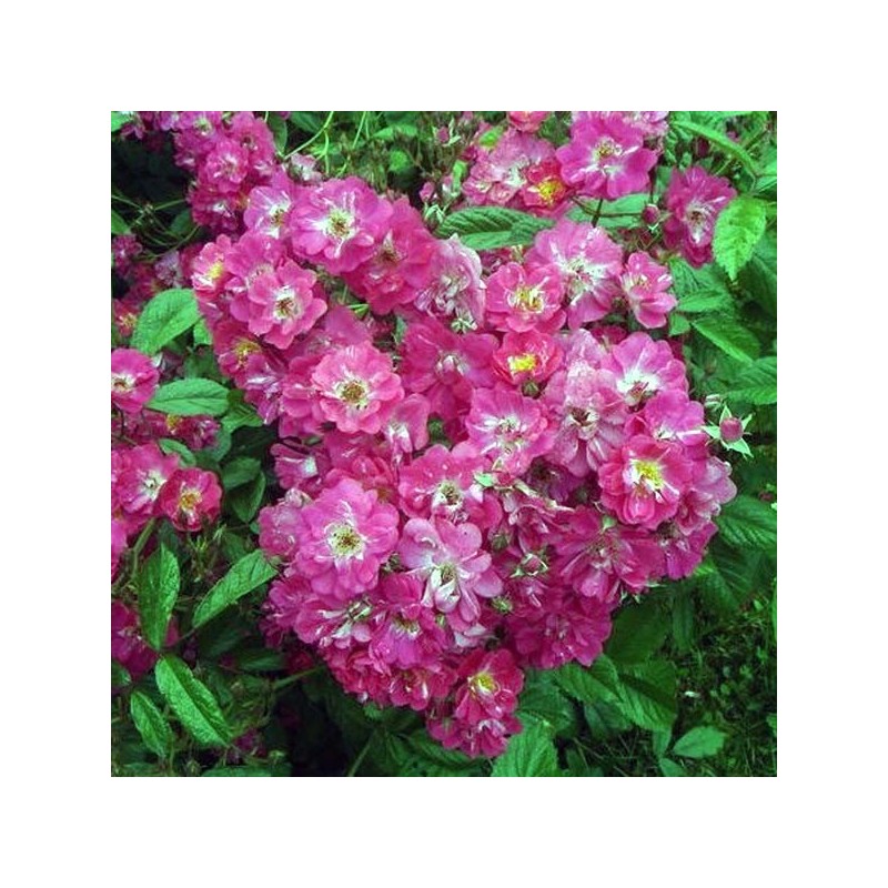 Floraison très remontante avec de grandes inflorescences qui portent une multitude de petites fleurs semi doubles de 3 cm de diamètre