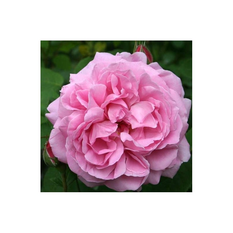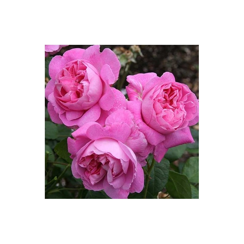 Grandes fleurs roses et doubles, au caractère de rose ancienne, dont l'aspect et le charme rappellent un peu une rose de Damas ancienne.