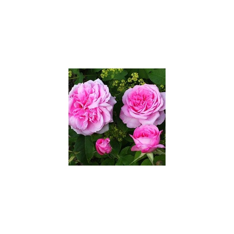 - Fleurs en forme de rosettes de type rose ancienne et d'une magnifique teinte rose intense.
