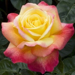 - Fleurs bicolores au Coloris inédit : jaune ourlé de rose Bengale.